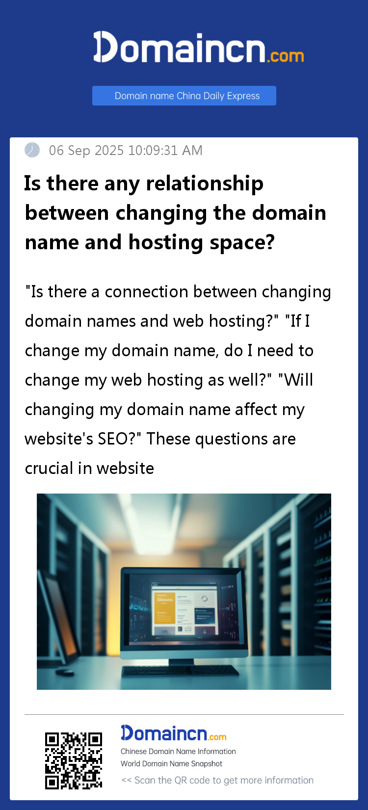 Does changing your domain name require changing your web hosting at the same time? The answer is: not necessarily. Changing your domain name doesn't necessarily mean you have to change your web hosting. You can continue using your existing hosting with the new domain name and simply point it to your server. This usually involves modifying the DNS records in your domain registrar's admin panel to point the new domain name to your web hosting IP address.