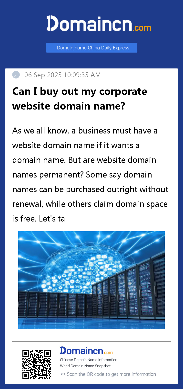Domain names need to be renewed annually (domain name registrations are in years, so each registration lasts one year). Only after renewal does you gain the right to use the domain name. The maximum renewal period for a domain name is 10 years, and there is no such thing as a buyout.