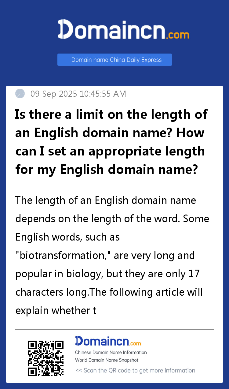 The length of an English domain name depends on the length of the word. Some English words, such as "biotransformation," are very long and popular in biology, but they are only 17 characters long.