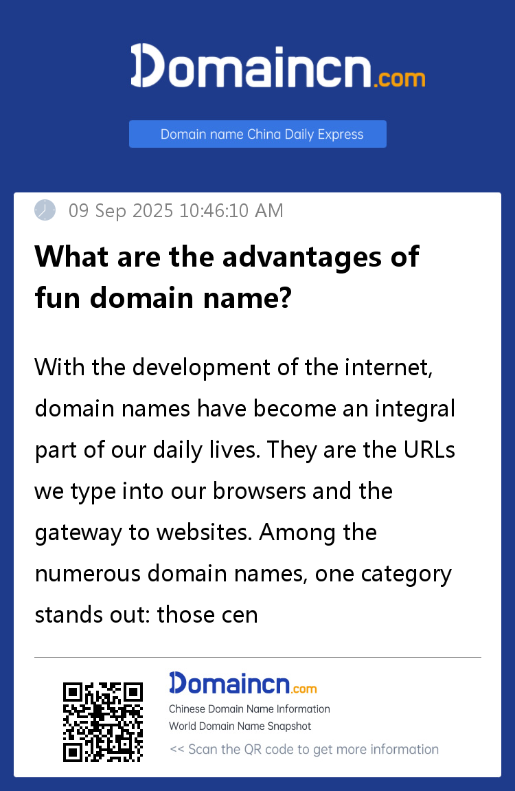 In short, "fun" domain names bring endless fun and creativity to the internet. Whether it's entertainment and leisure, entrepreneurial opportunities, education and learning, or personal blogging, "fun" domain names can play an important role. They're more than just a string of characters; they're a portal to fun and creativity. Let's explore the endless possibilities of "fun" domain names and bring more joy and excitement to our lives!