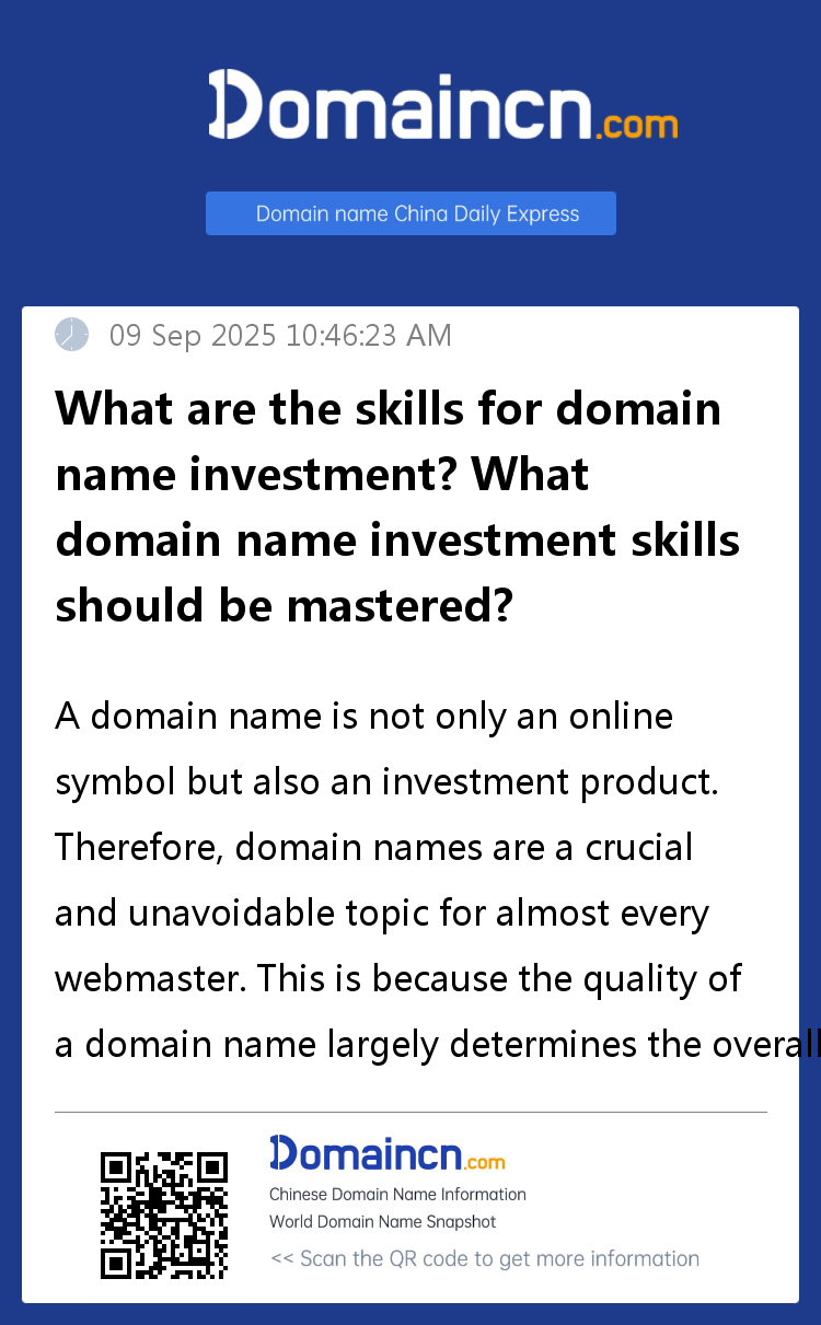4. Expand your network and strengthen your information sources. The internet is a network, and domain name investment is a highly dynamic activity. A single piece of news can cause turmoil in the entire domain name investment market. Therefore, when doing nothing, make a few friends and improve your information channels to gain access to more diverse information, thereby helping others make domain name investments.