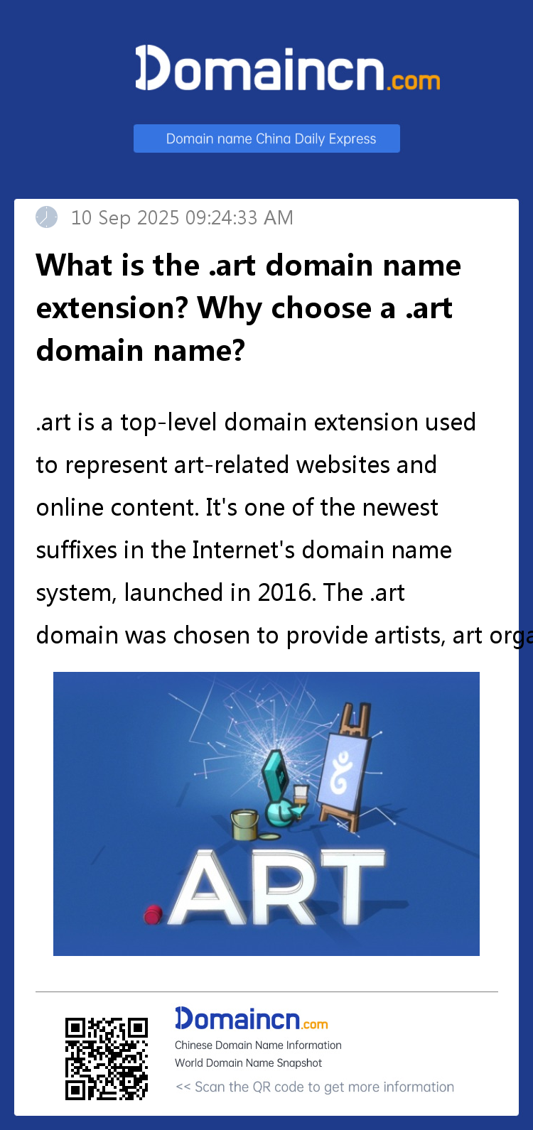 Finally, .art domains bring more creativity and inspiration to the art world. Artists can express their individuality and innovation in their domain name choices. Compared to traditional .com or .net domains, .art domains are more unique and artistic. They provide artists with an opportunity to showcase their creativity online and share unique artistic experiences with their audiences.