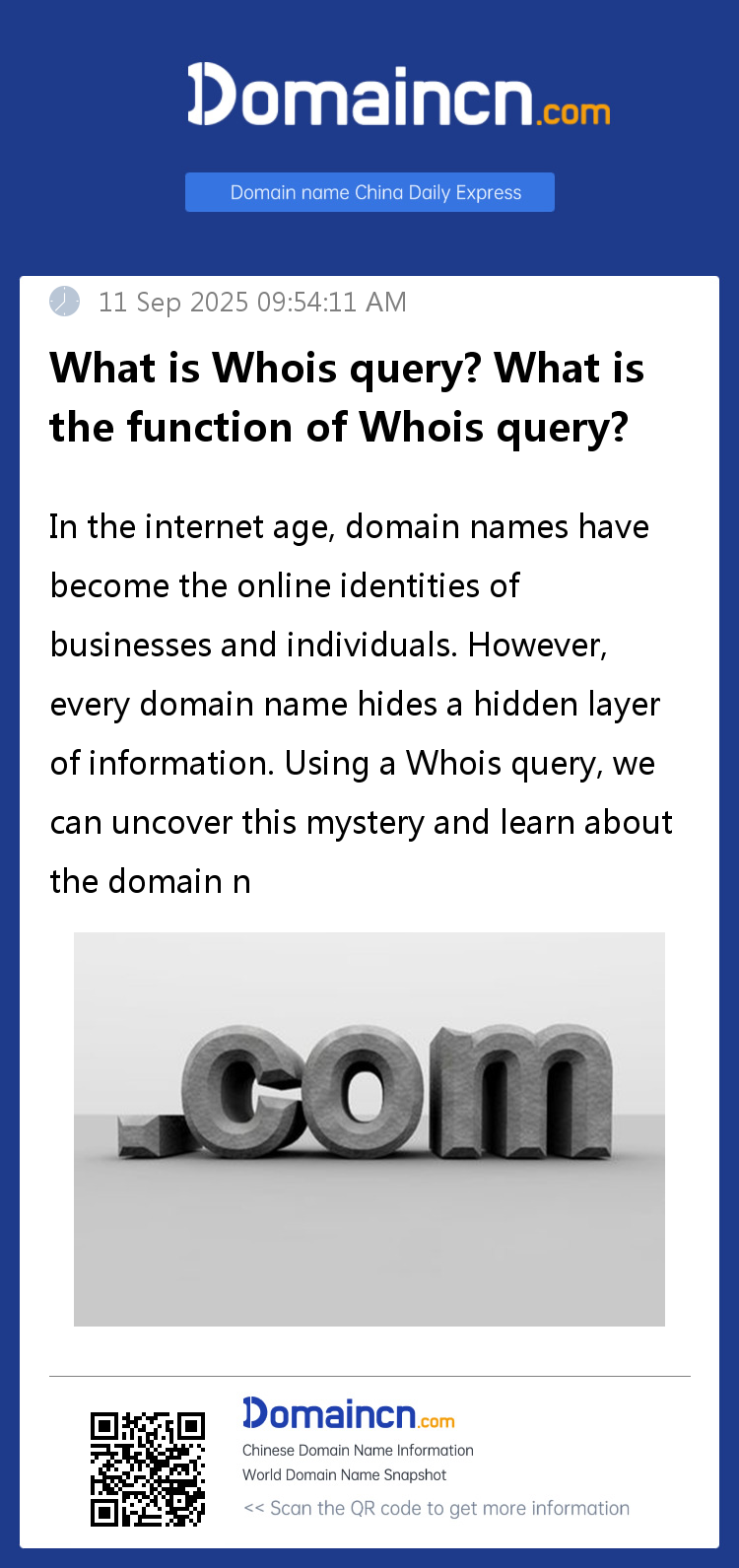 In the internet age, domain names have become the online identities of businesses and individuals. However, every domain name hides a hidden layer of information. Using a Whois query, we can uncover this mystery and learn about the domain name's owner, registrar, and other key information. This article will explain the concept and purpose of a Whois query, as well as how to use it to obtain important information about a domain name.