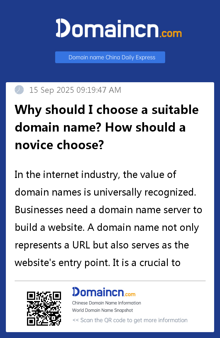 In the internet industry, the value of domain names is universally recognized. Businesses need a domain name server to build a website. A domain name not only represents a URL but also serves as the website's entry point. It is a crucial tool for both users and businesses to promote their products. Why choose the right domain name?