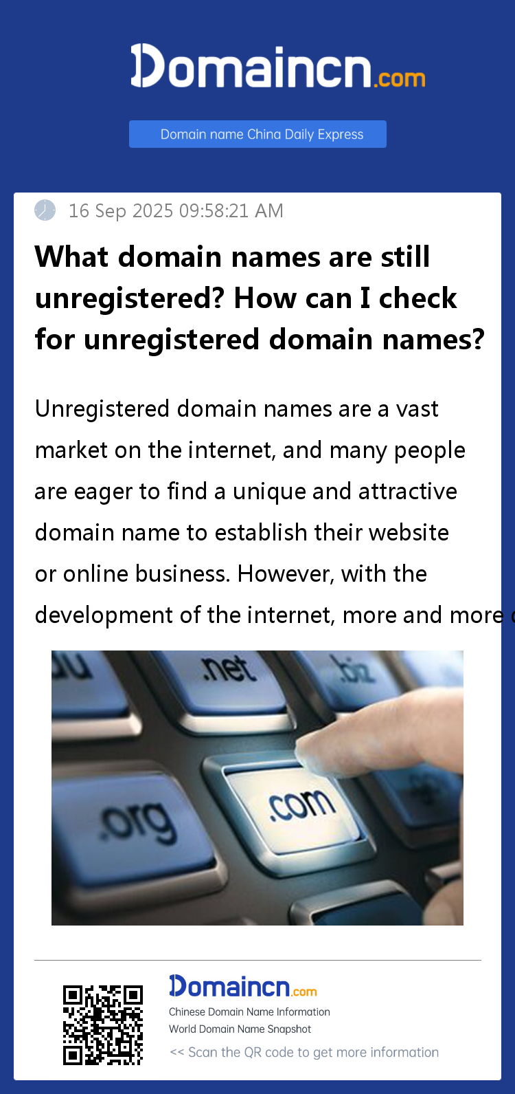 Unregistered domain names are a vast market on the internet, and many people are eager to find a unique and attractive domain name to establish their website or online business. However, with the development of the internet, more and more domain names have already been registered, making it increasingly difficult to find a suitable, unregistered domain name.