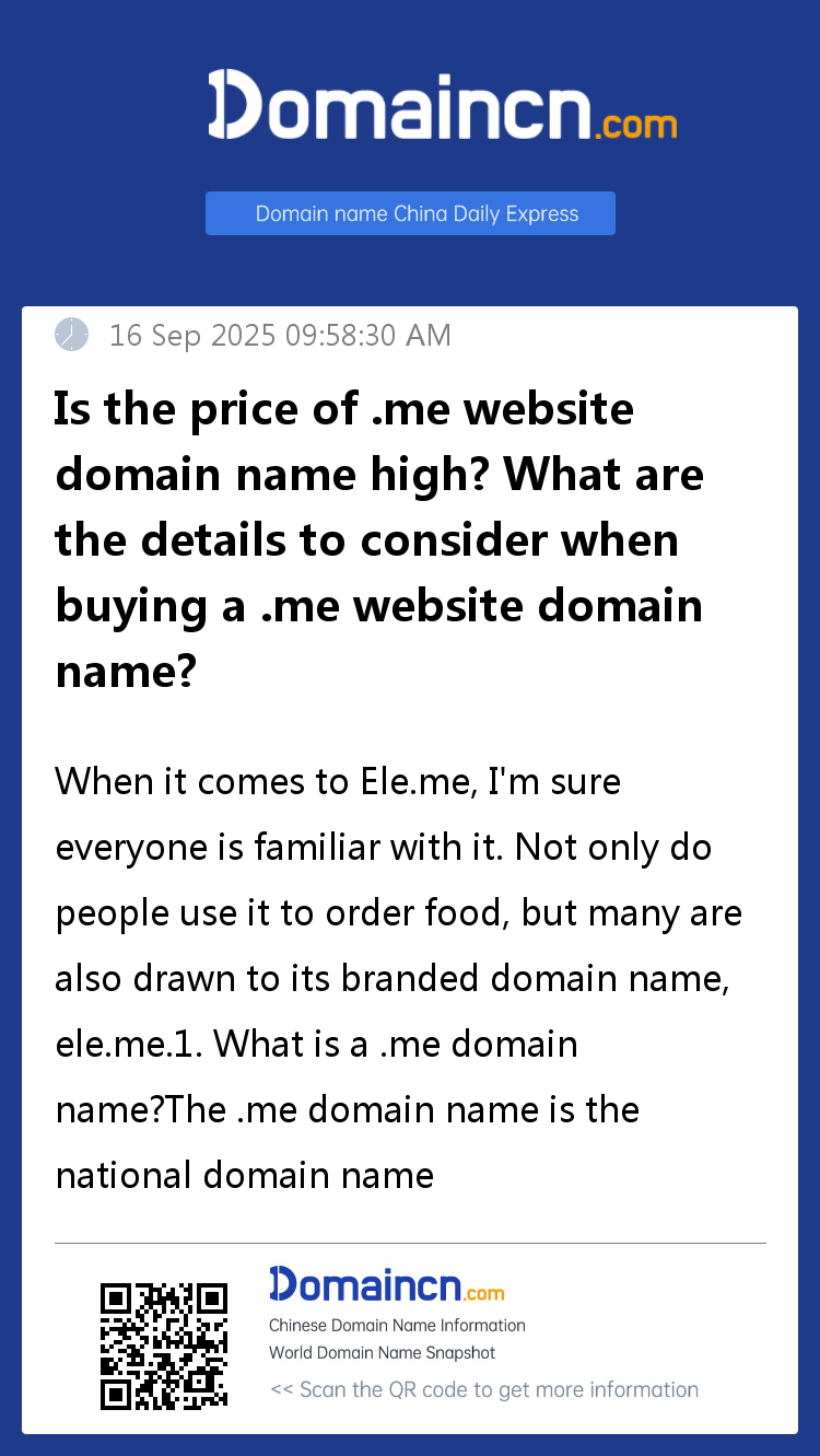 Currently, domestic domain name registrars have different registration prices for .me domain names, ranging from a few dozen yuan to over a hundred yuan.