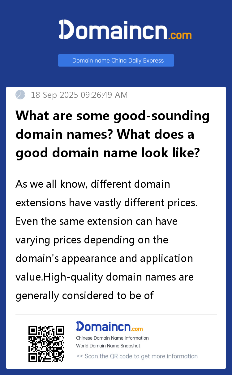 High-quality domain names are generally considered to be of excellent appearance, widely applicable, and capable of expressing or carrying specific information.