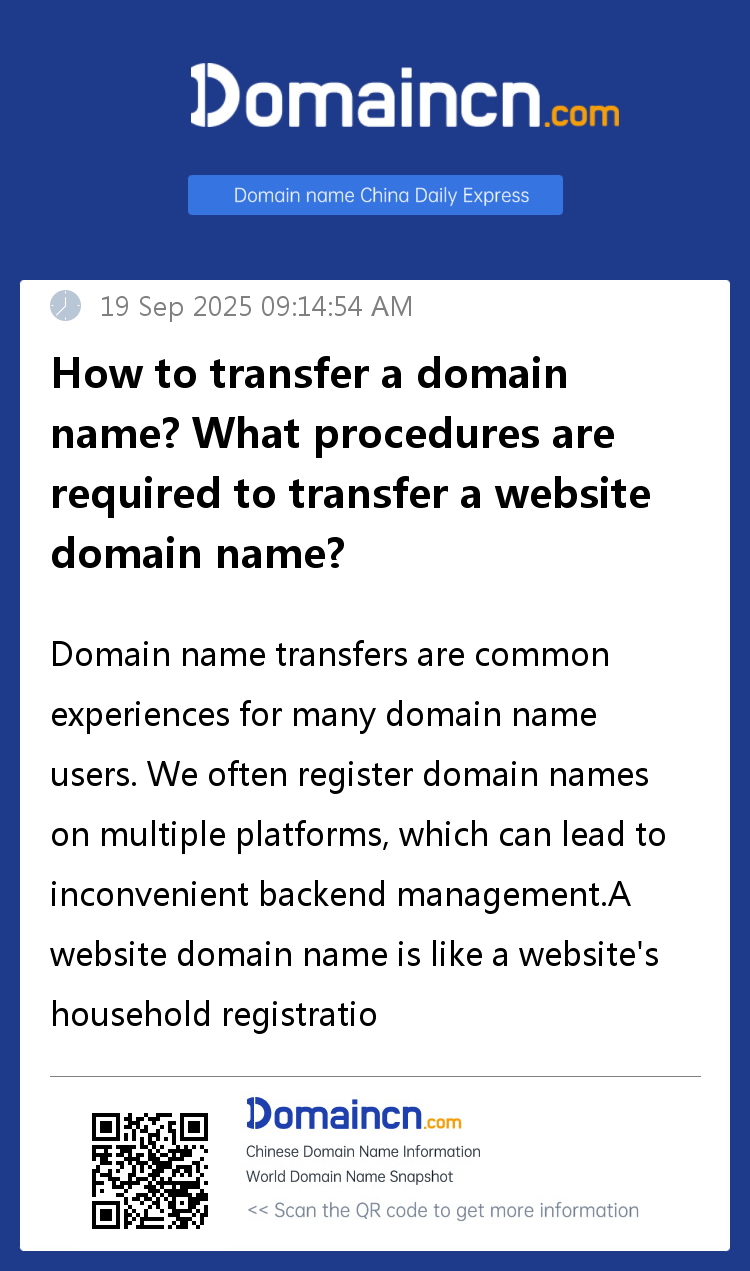 Domain name transfers are common experiences for many domain name users. We often register domain names on multiple platforms, which can lead to inconvenient backend management.