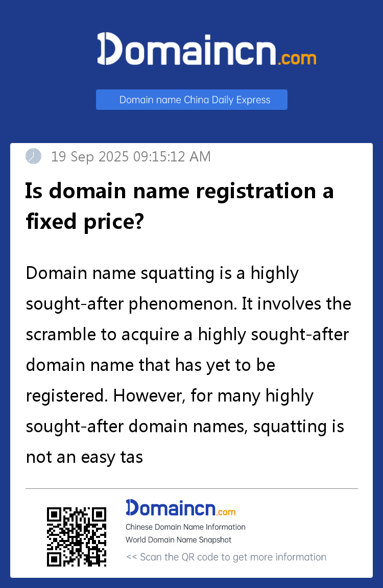 A fixed price is a common transaction method for domain name squatting. A fixed price means that during the squatting process, the domain name registrar sets a fixed price, which anyone can purchase at that price. The advantages of a fixed price are simplicity, transparency, and fairness. Buyers only need to pay a set fee to obtain the domain name, eliminating the need for price bidding and the complex transaction process.