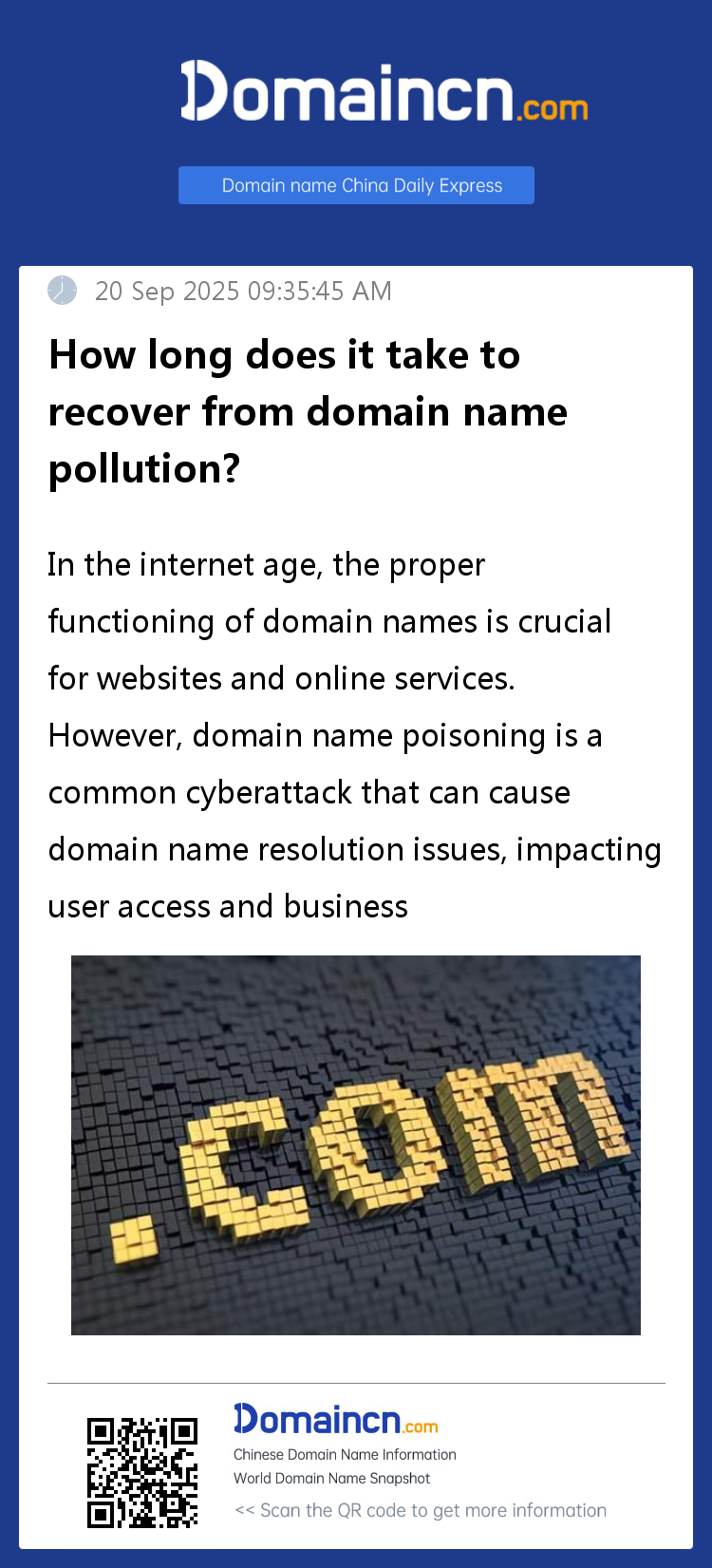 Scope of Pollution: If the domain pollution affects the entire network or multiple domains, recovery time may be longer. This requires more time to track down and clean up the affected domains and ensure the security of the entire network.
