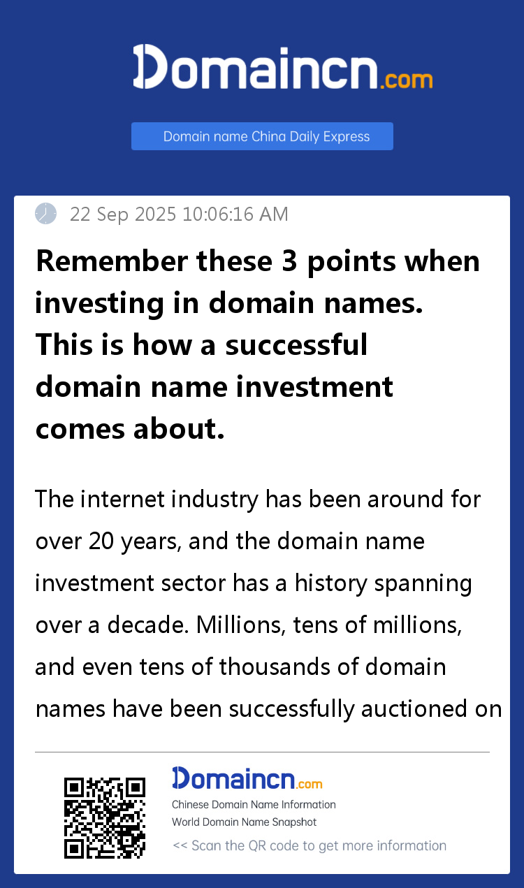 First, only invest in high-value domains; absolutely avoid junk domains these days. High value doesn't necessarily mean high price. Everyone has their own standards of value. Sometimes, more valuable domains are unpopular with sellers and sold at low prices. With good judgment, you can profit several times over before reselling them. High prices don't always mean high prices. Some domains appear cheap and good value, but are driven sky-high in auctions. No matter how good a domain is, an inflated price is detrimental to investment. The value of a domain won't be maintained over a short period of time, and the risk is high. Any fluctuations can ultimately backfire. As for how to judge the value of a domain, you need to learn and think deeply.