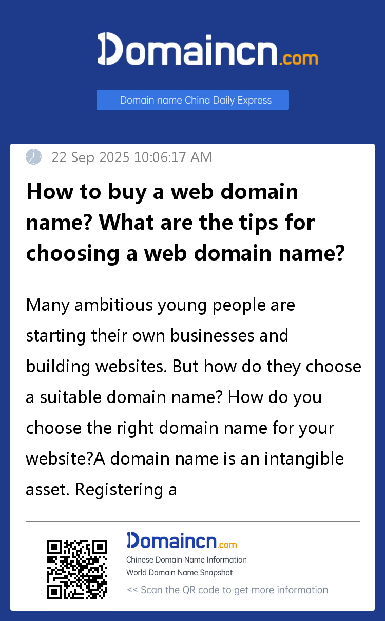 Domains should be either pure English, pure Pinyin, or pure numbers. Domain names with Chinese characters, mixed alphanumeric characters, or a mixture of Chinese and English will significantly diminish their image and value! Even domain names with only three or four characters are worthless.
