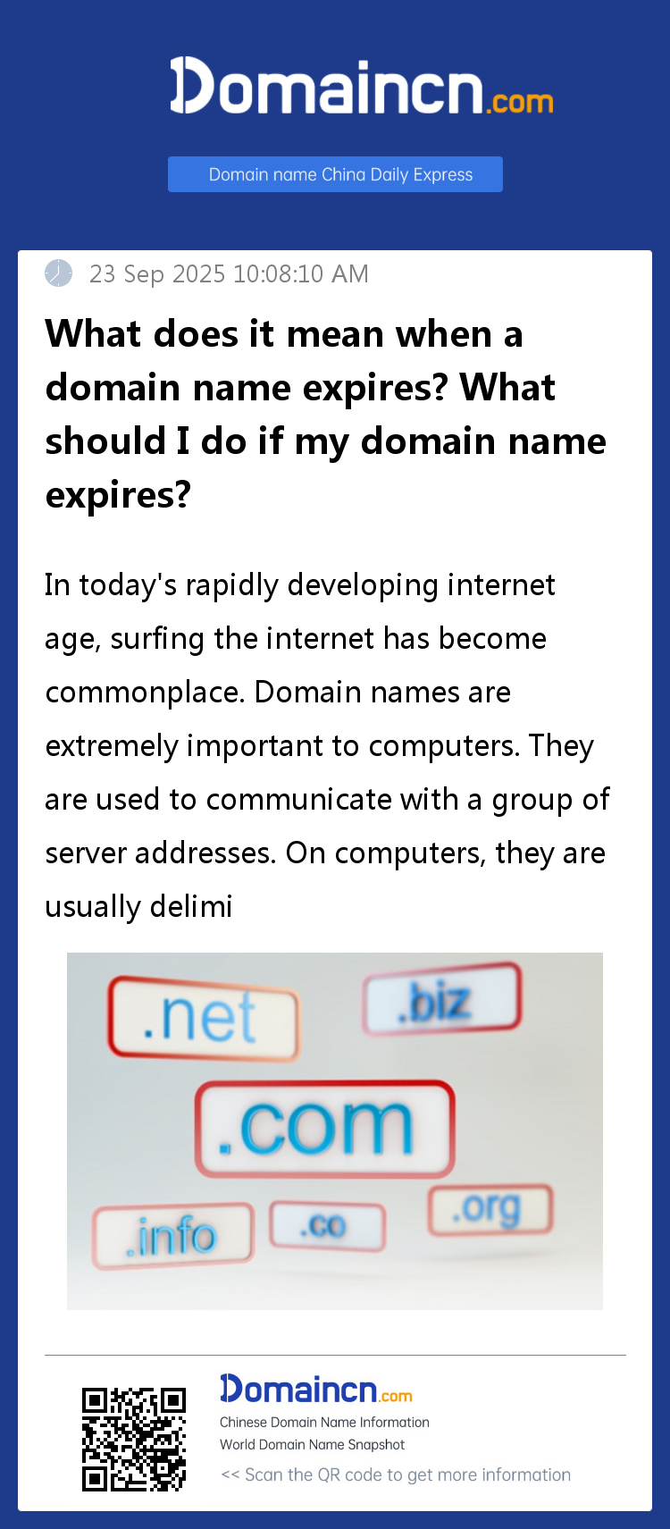 When a website's domain name expires, it can generally be renewed within a month at the original price. After a month, it enters a high-priced redemption period, with fees increasing to several times, even dozens or even hundreds of times, the normal renewal price, ranging from hundreds to thousands. If the domain name redemption period expires, there's no chance to renew and reclaim the domain name, and you'll have to wait until it expires and re-register. For more domain name news, please follow Juming.com!