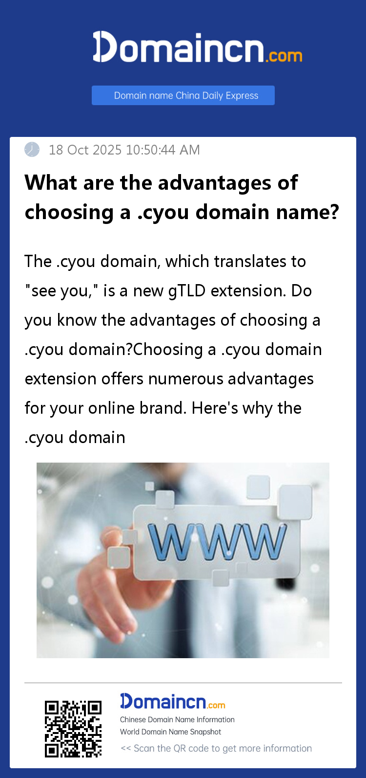 The .cyou domain, which translates to "see you," is a new gTLD extension. Do you know the advantages of choosing a .cyou domain?