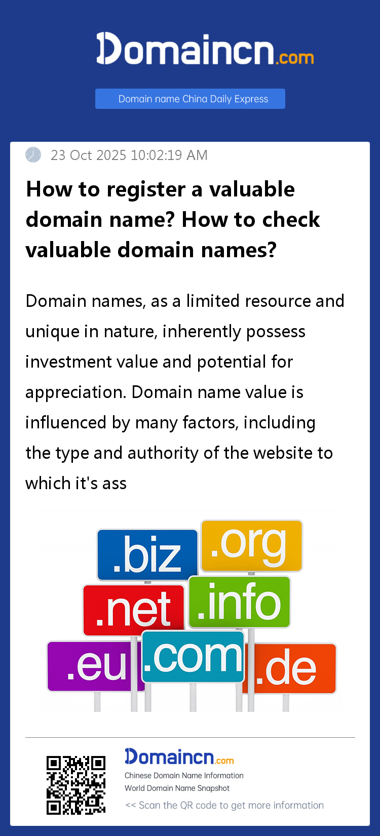 Domain names, as a limited resource and unique in nature, inherently possess investment value and potential for appreciation. Domain name value is influenced by many factors, including the type and authority of the website to which it's associated, its age, and its components. With the rapid development of the internet, more and more people are registering domain names. With the proliferation of domain name registrars and a wide variety of domain names available, we'll explain how to register and find valuable domain names.