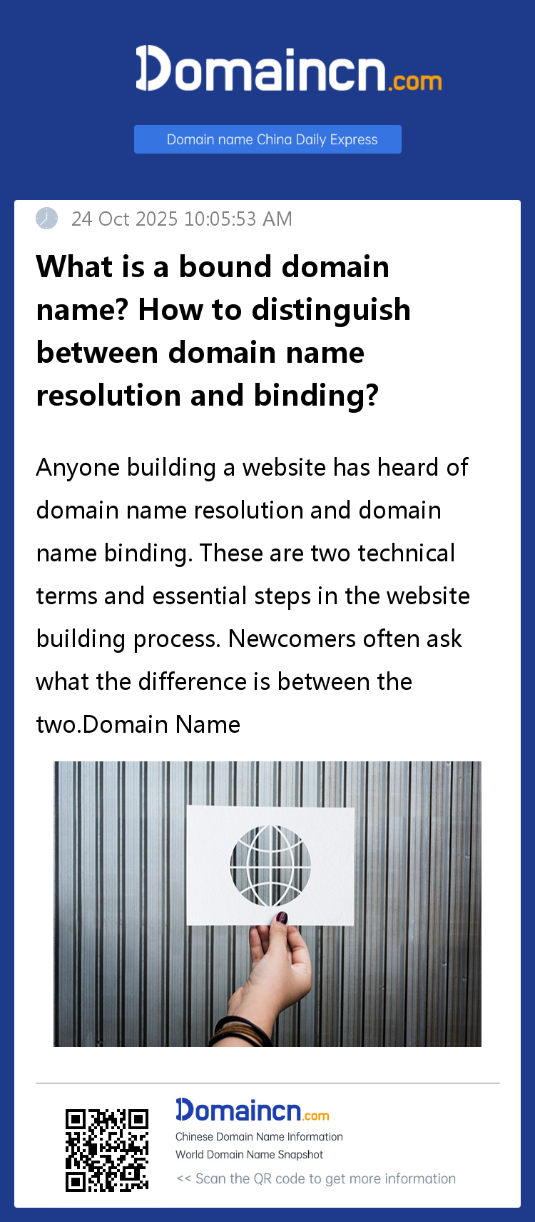 Domain name binding involves binding a specific domain name to a host. This way, when a visitor accesses the domain name, they will open the web page stored on the host hosting company. This effectively grants the domain name access to a specific website. It's also understood that in the file system, a file name is tied to that file, allowing the correct file to be found by the file name.