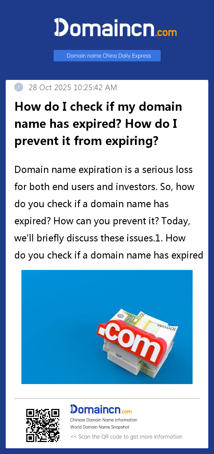 Domain name expiration is a serious loss for both end users and investors. So, how do you check if a domain name has expired? How can you prevent it? Today, we'll briefly discuss these issues.