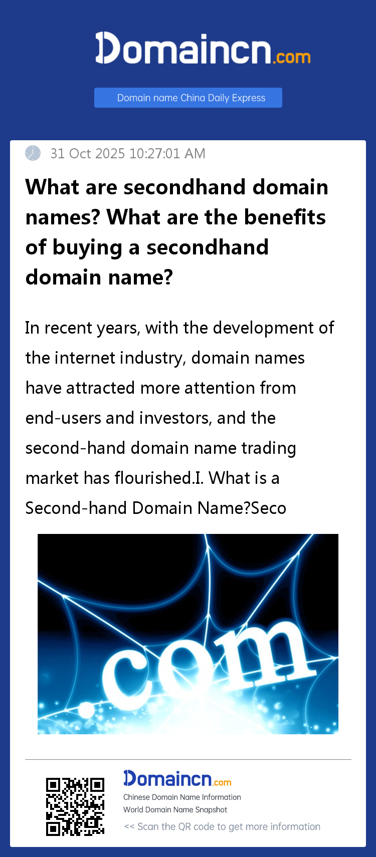 Second-hand domain names can be broadly divided into two categories: one is domains purchased by domain investors specifically for investment purposes. These domains may have circulated among several people, but have never actually been used. The other category is domains that have already been used to build websites, but for various reasons, they are no longer operated and are now intended for sale. Although broadly speaking, both types of domains can be called second-hand domain names, usually, when we talk about second-hand domain names, we are referring to the latter, that is, domains that have been used to build websites but have been sold.