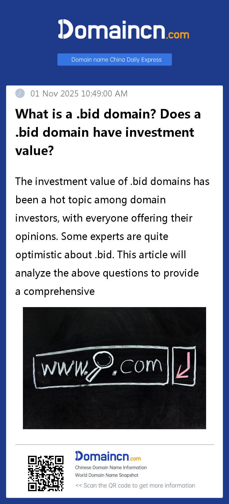 The investment value of .bid domains has been a hot topic among domain investors, with everyone offering their opinions. Some experts are quite optimistic about .bid. This article will analyze the above questions to provide a comprehensive understanding for those with questions about domains.