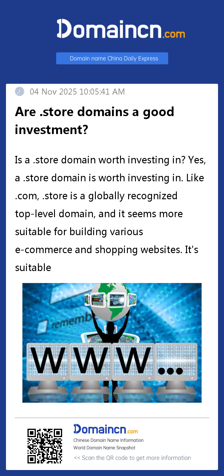 The ".store" domain has advantages such as brevity, clear meaning, and high recognizability. It is managed and operated by Radix, the world's third-largest new top-level domain registry.
