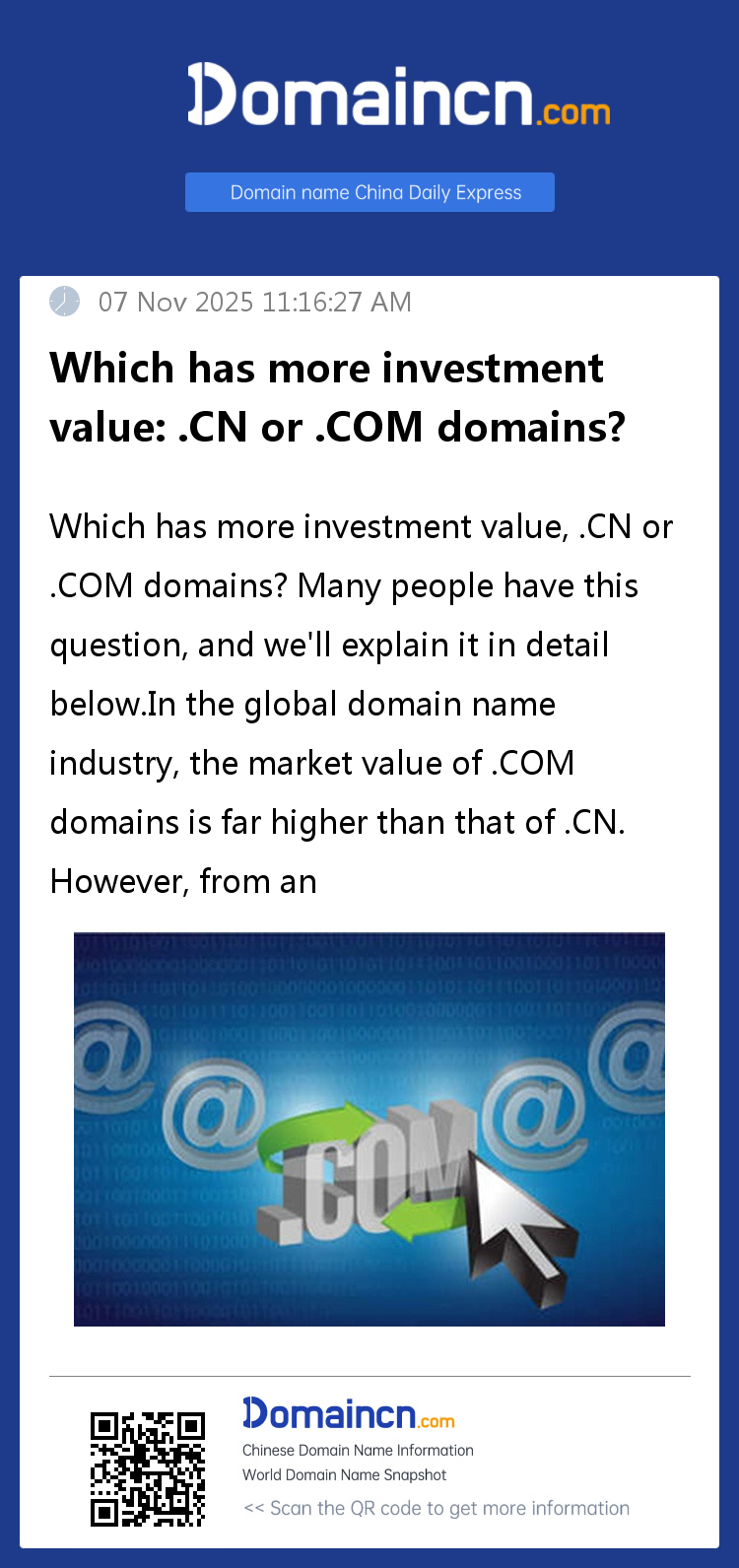 Which has more investment value, .CN or .COM domains? Many people have this question, and we'll explain it in detail below.