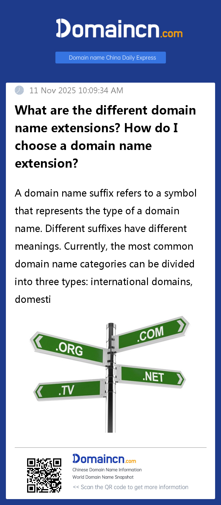 A domain name suffix refers to a symbol that represents the type of a domain name. Different suffixes have different meanings. Currently, the most common domain name categories can be divided into three types: international domains, domestic domains (including Chinese and English), and country code top-level domains (ccTLDs).