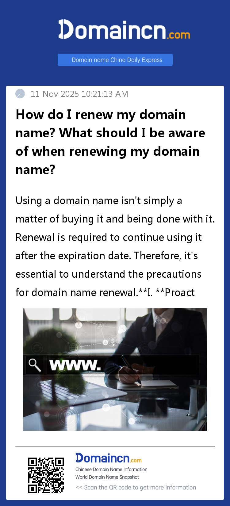 **I. **Proactive Renewal:** If the domain holder proactively renews the domain before its expiration, a 15-day grace period follows. If the registration service provider deletes the domain during this period, CNNIC will refund the renewal fee.