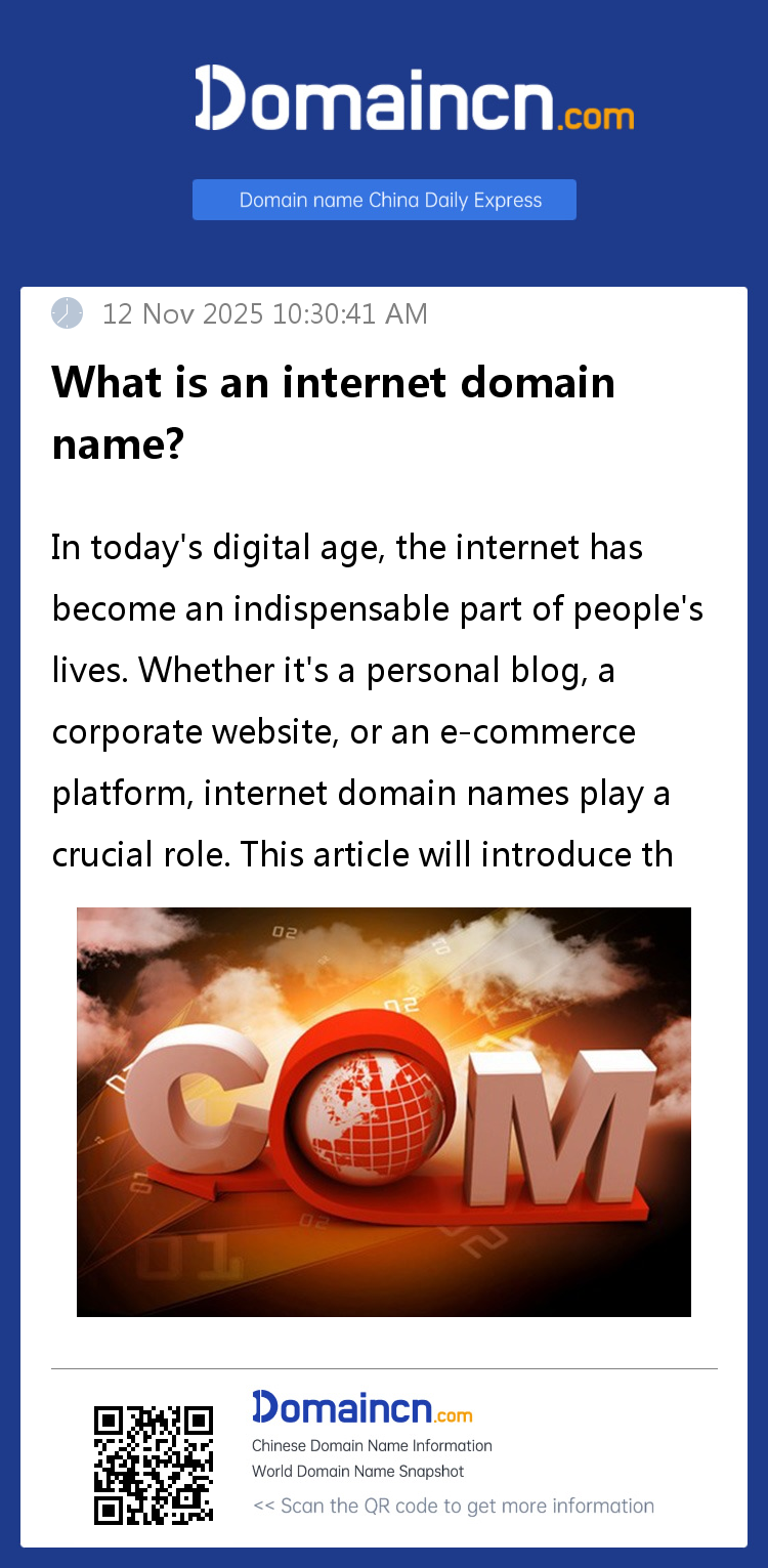 In today's digital age, the internet has become an indispensable part of people's lives. Whether it's a personal blog, a corporate website, or an e-commerce platform, internet domain names play a crucial role. This article will introduce the basic concepts, development history, importance, and future trends of internet domain names.