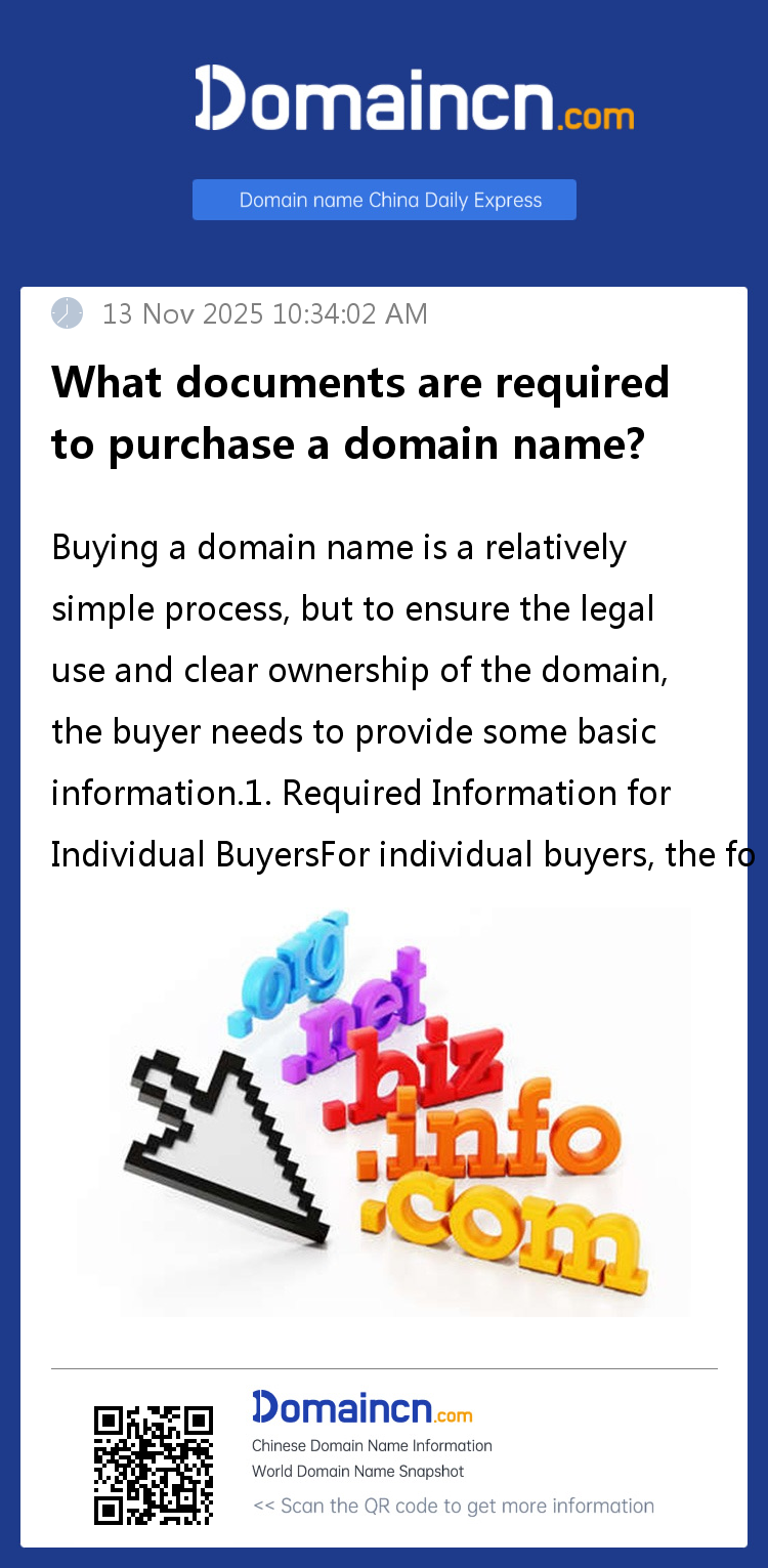 Buying a domain name is a relatively simple process, but to ensure the legal use and clear ownership of the domain, the buyer needs to provide some basic information.