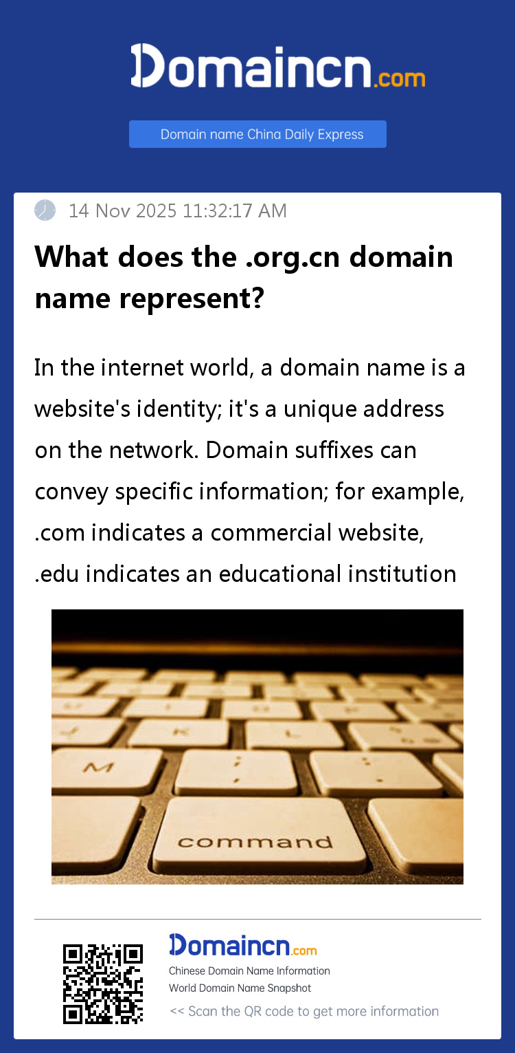 In the internet world, a domain name is a website's identity; it's a unique address on the network. Domain suffixes can convey specific information; for example, .com indicates a commercial website, .edu indicates an educational institution, and .gov indicates a government agency. The .ORG.CN domain, however, has a specific direction and meaning, which this article will analyze in detail.