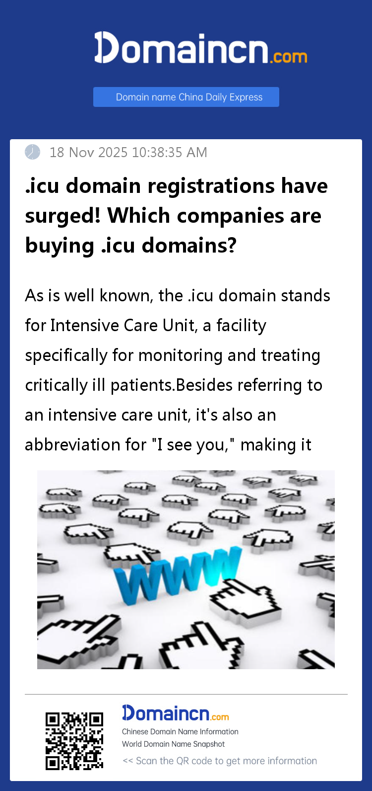 As is well known, the .icu domain stands for Intensive Care Unit, a facility specifically for monitoring and treating critically ill patients.