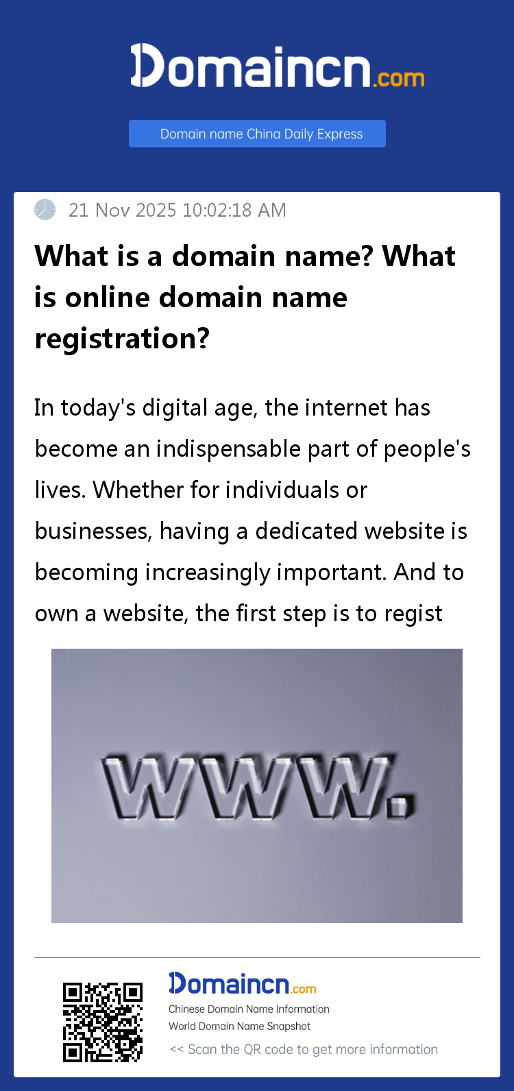 In today's digital age, the internet has become an indispensable part of people's lives. Whether for individuals or businesses, having a dedicated website is becoming increasingly important. And to own a website, the first step is to register a domain name. This article will explore the importance of online domain name registration and how to register a domain name.