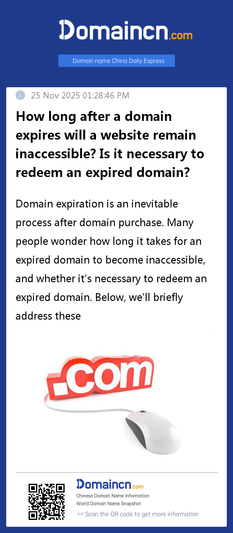 Domain expiration is an inevitable process after domain purchase. Many people wonder how long it takes for an expired domain to become inaccessible, and whether it's necessary to redeem an expired domain. Below, we'll briefly address these questions to help you decide if you encounter similar situations in the future.