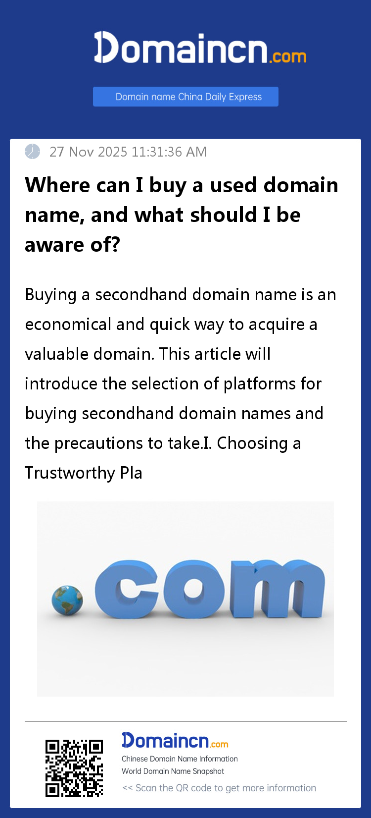 Buying a secondhand domain name is an economical and quick way to acquire a valuable domain. This article will introduce the selection of platforms for buying secondhand domain names and the precautions to take.